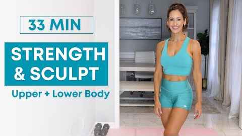 This is a 33 min strength workout with dumbbells. I recommend 1 light set, 1 heavier set (if a beginner, 3-5lbs for arms and 5-10+lbs for lower body). This workout includes a warmup, workout and stretch at the end. The first half is upper body exercises, and second half with lower body. I hope you enjoy this workout!